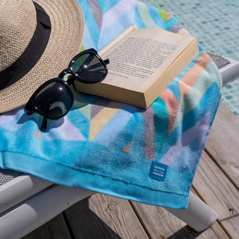 This beach towel is made from soft, 100% organic cotton. It features the exclusive YOUNITED print design, making it a practical and stylish beach or poolside accessory.
