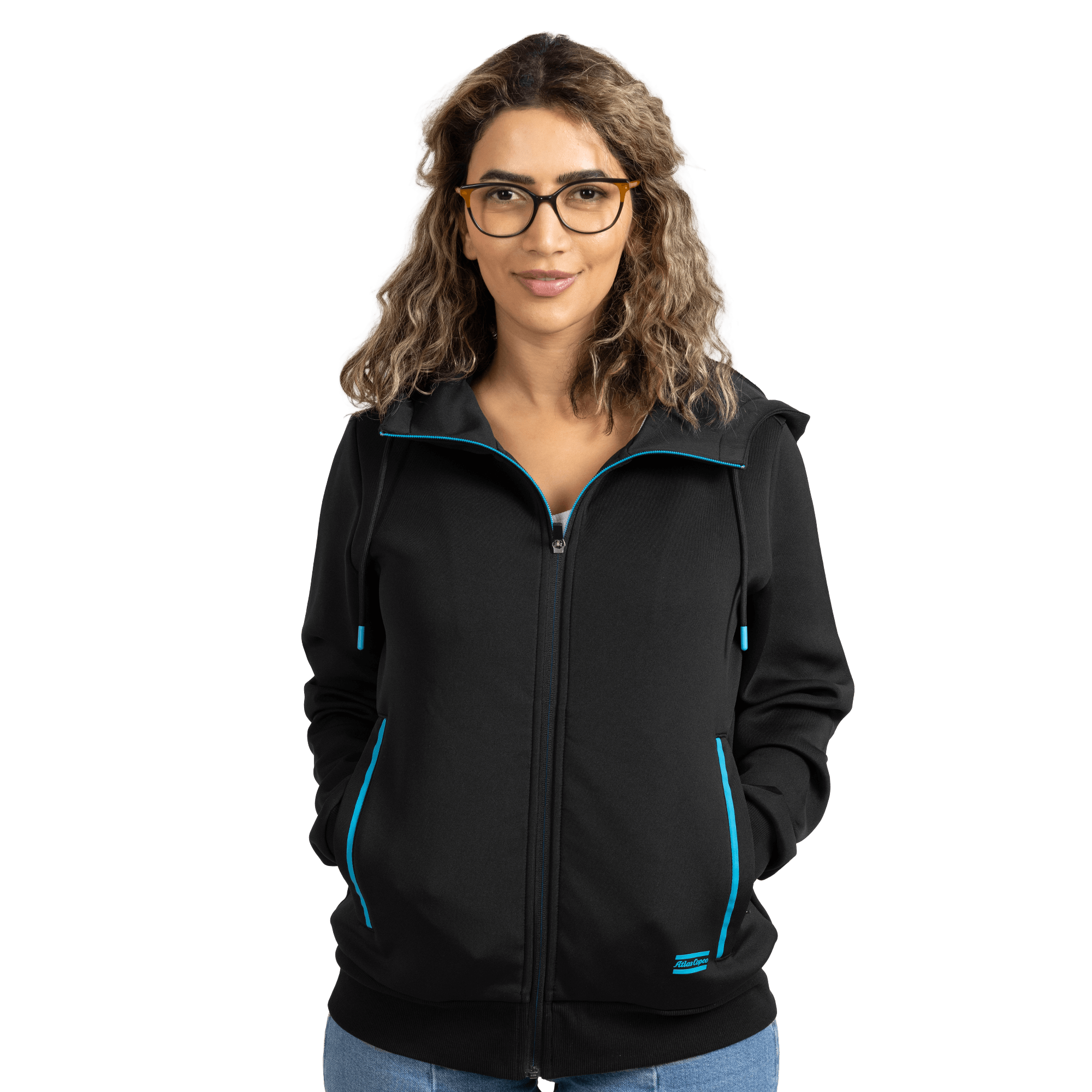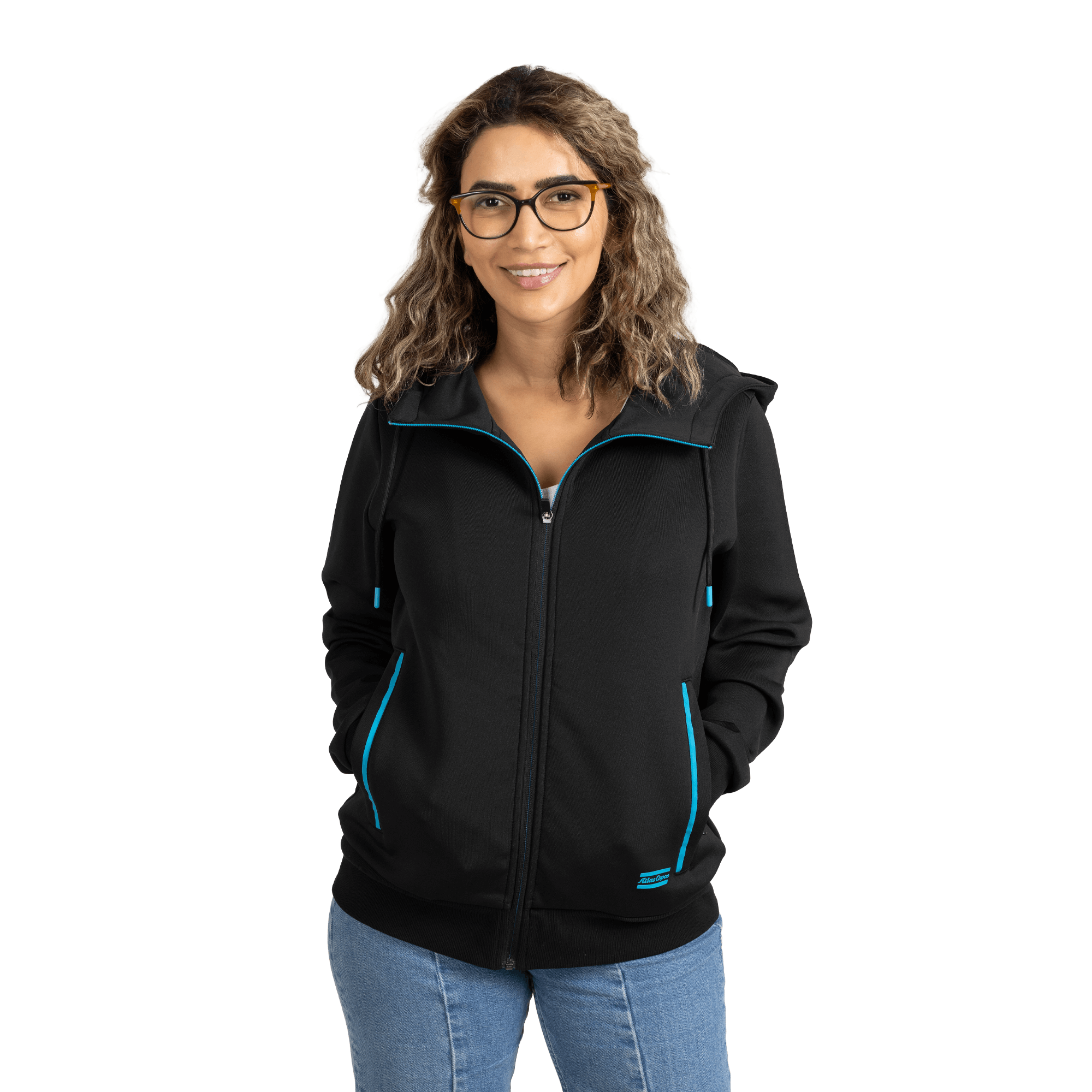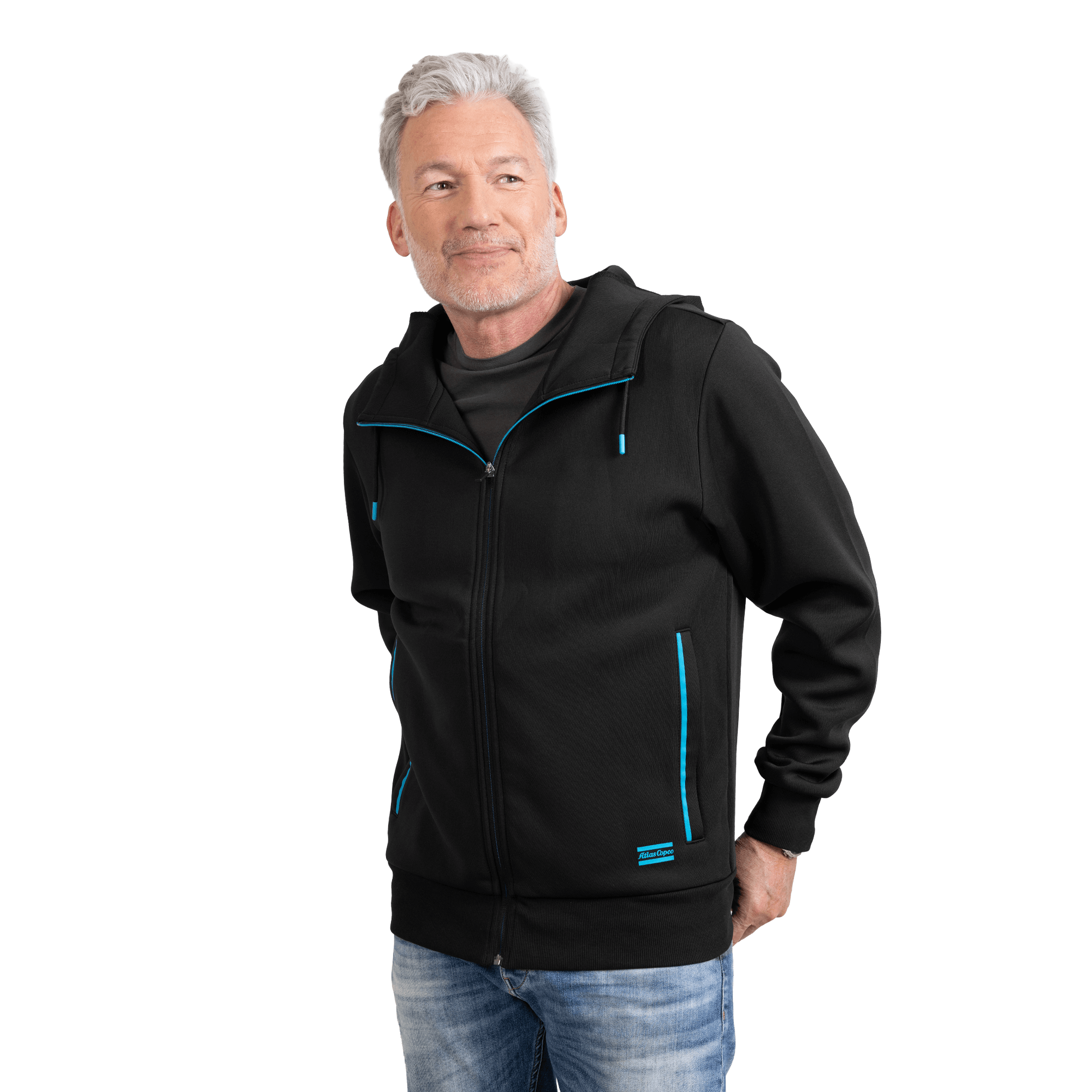 Contemporary hoodie with a full zip, featuring an exclusive design and an embossed logo on the back. Thoughtfully finished with contrast details in signature Atlas Copco blue for a distinctive and stylish look.