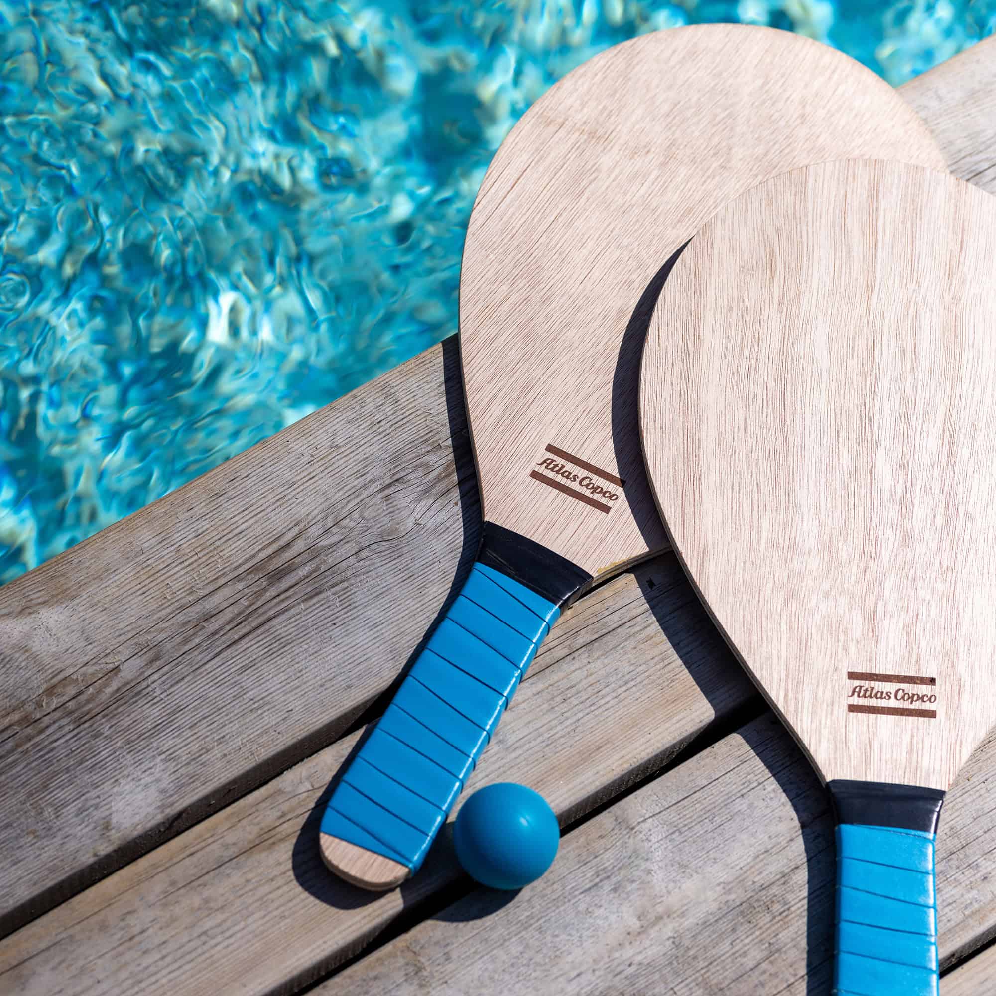 An elegant beach tennis set, made of wood with PU handles for a more comfortable grip. ​ A game that is easy to learn and suitable both grown ups and kids.​ The game includes two rackets and two rubber balls, packaged in a canvas bag to make it easy to carry with you. ​ This game is designed solely for use on dry surfaces and is not intended for use in the water.