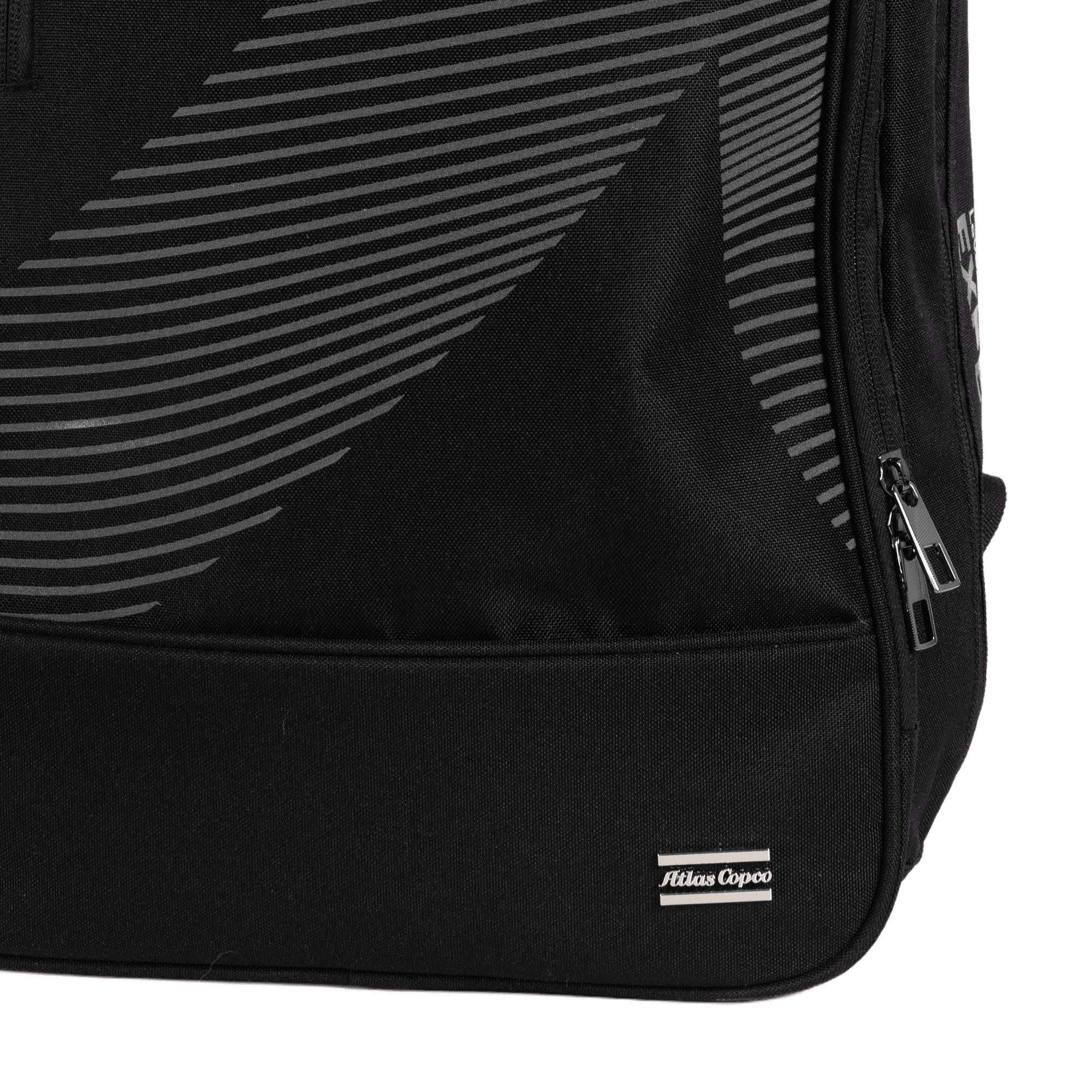 Durable backpack in recycled, water-resistant fabric with reversed zippers and reflective details. Features a padded laptop compartment and organized storage. Finished with a metallic 3D silver Atlas Copco logo - combining functionality, innovation, and a clean professional look.