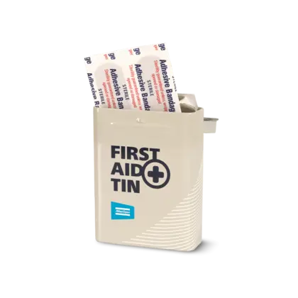Whether it's a scrape or a cut, this practical first aid kit comes to the rescue. Packed in a durable metal tin, the set contains 20 adhesive fabric plasters in two sizes and 2 blister patches to treat minor wounds. Ideal for travelling or as a first aid supply in your car, toolbox or an office drawer. When you run out of plasters, simply refill the tin or reuse it to store other small items.