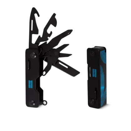 Pockable Multitool in 440C stainless-steel for blade & scissors and 420 stainless for other components. Excellent stain and rust resistance even when it fully submerged in water. 11 functions in one.
