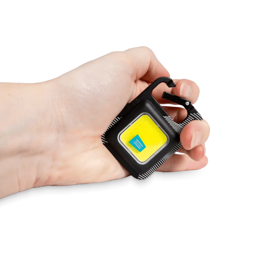 This safety hook combines several features with a mini flashlight, making it the perfect item for generous giveaways. The hook comes equipped with a magnetic fastening, a sturdy bottle opener, and a Type-C fast charging port for its flashlight feature with up to four hours working time.