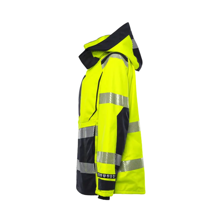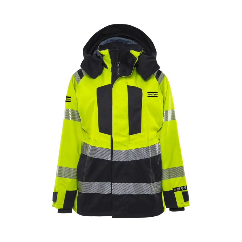 Flame-protected shell jacket for women, made from a waterproof, windproof, and breathable material. This comfortable multinorm year-round jacket offers inherent flame protection and certified protection against multiple risks. It provides extra high electric arc protection while ensuring the wearer stays dry, protected from wind, and comfortable in all conditions. Please note: This is an On Demand item, which means it is printed specifically upon order. As a result, the delivery time will be approximately two weeks longer than usual. Also, no returns due to the same reason.