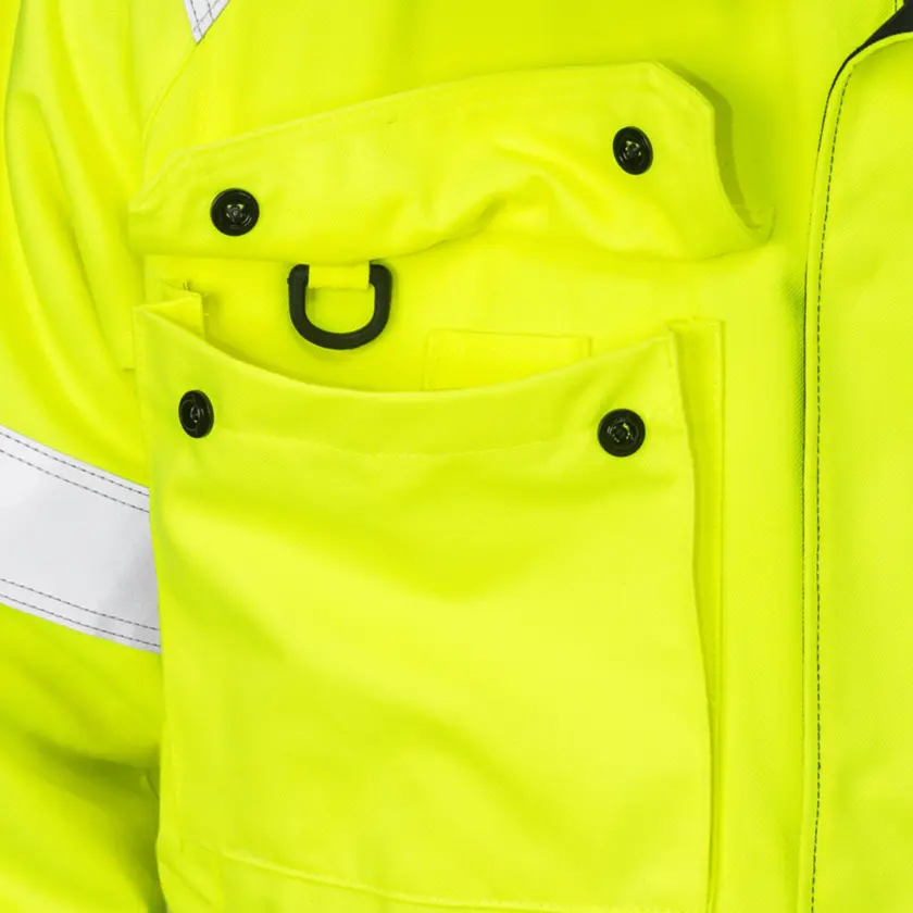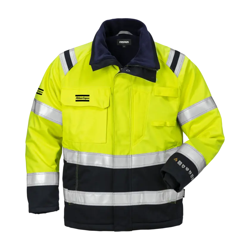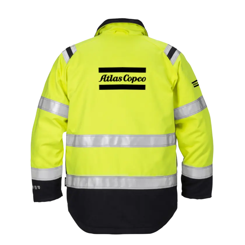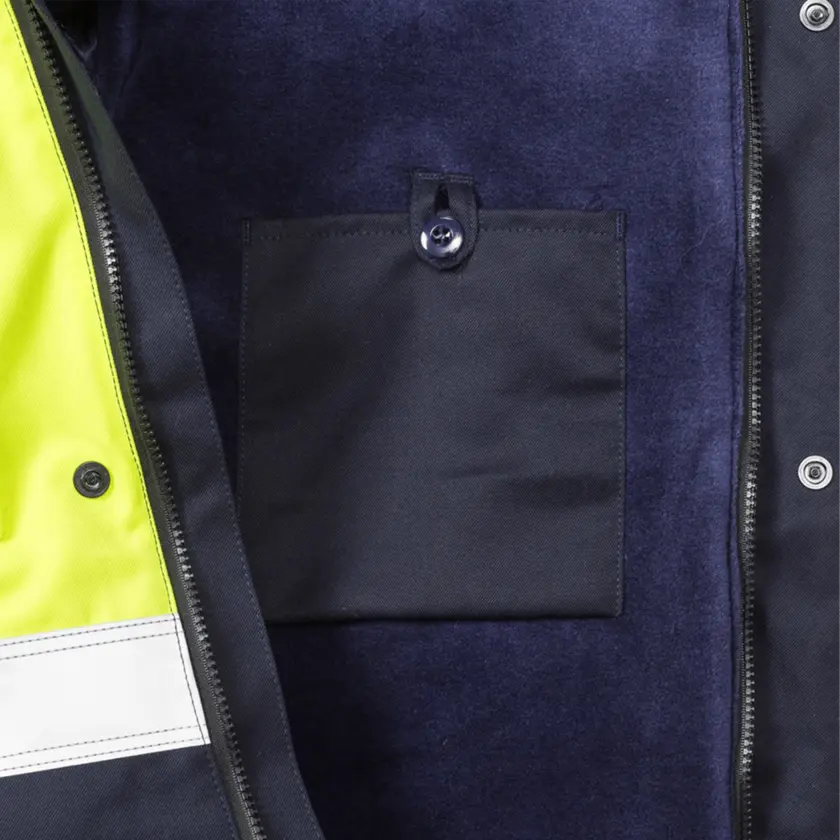 High-visibility certified winter jacket with inherent flame protection, designed for ATEX environments without any metal details. The jacket is approved for industrial laundry, ensuring durability and easy maintenance. It offers multinorm inherent protection that is certified against multiple risks. The fabric is dirt, oil, and water resistant, effectively repelling common industrial contaminants. The jacket is also approved for welding, making it suitable for use in welding tasks thanks to its protective properties. Please note: This is an On Demand item, which means it is printed specifically upon order. As a result, the delivery time will be approximately two weeks longer than usual. Also, no returns due to the same reason.