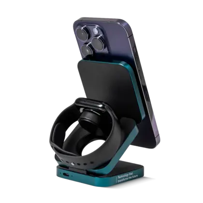 Charge your devices in style with this 3-in-1 15W Charger, crafted from recycled materials. This sleek, foldable charger powers your phone, smartwatch( only Apple watch), and earbuds simultaneously. Ideal for eco-conscious tech users, it's portable, efficient, and environmentally friendly—perfect for modern, sustainable lifestyles.